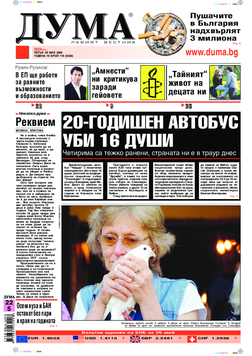 АБОНАМЕНТ за вестник „ДУМА“ за 2026 година. Можете да се абонирате в: „Български пощи“ АД до 15 декември 2025 г., „Доби прес“ ЕООД до 28 декември 2025 г., в редакцията на вестника до 20 декември 2025 г. Каталожен номер 6. Цени: 12 месеца - 149 € / 291,42 лв., 6 месеца - 75 € / 146,69 лв., 3 месеца - 40 € / 78,23 лв., 1 месец - 14 € / 27,38 лв. За повече информация тел. 02 9705 203 и 02 9705 216 отдел „Разпространение” на в-к ДУМА на ул. „Позитано” 20 А. E-mail: abonament@duma.bg АБОНАМЕНТ за вестник „ДУМА“ за 2026 година. Можете да се абонирате в: „Български пощи“ АД до 15 декември 2025 г., „Доби прес“ ЕООД до 28 декември 2025 г., в редакцията на вестника до 20 декември 2025 г. Каталожен номер 6. Цени: 12 месеца - 149 € / 291,42 лв., 6 месеца - 75 € / 146,69 лв., 3 месеца - 40 € / 78,23 лв., 1 месец - 14 € / 27,38 лв. За повече информация тел. 02 9705 203 и 02 9705 216 отдел „Разпространение” на в-к ДУМА на ул. „Позитано” 20 А. E-mail: abonament@duma.bg