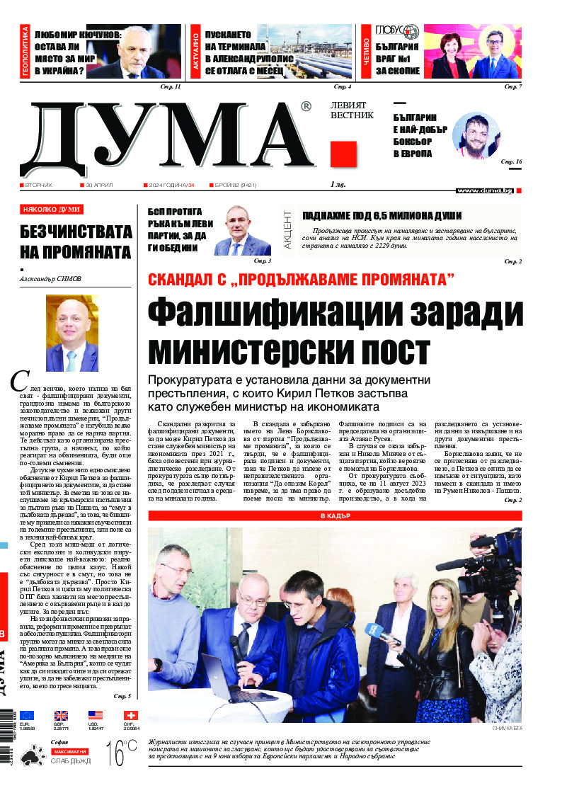 АБОНАМЕНТ за вестник „ДУМА“ за 2026 година. Можете да се абонирате в: „Български пощи“ АД до 15 декември 2025 г., „Доби прес“ ЕООД до 28 декември 2025 г., в редакцията на вестника до 20 декември 2025 г. Каталожен номер 6. Цени: 12 месеца - 149 € / 291,42 лв., 6 месеца - 75 € / 146,69 лв., 3 месеца - 40 € / 78,23 лв., 1 месец - 14 € / 27,38 лв. За повече информация тел. 02 9705 203 и 02 9705 216 отдел „Разпространение” на в-к ДУМА на ул. „Позитано” 20 А. E-mail: abonament@duma.bg АБОНАМЕНТ за вестник „ДУМА“ за 2026 година. Можете да се абонирате в: „Български пощи“ АД до 15 декември 2025 г., „Доби прес“ ЕООД до 28 декември 2025 г., в редакцията на вестника до 20 декември 2025 г. Каталожен номер 6. Цени: 12 месеца - 149 € / 291,42 лв., 6 месеца - 75 € / 146,69 лв., 3 месеца - 40 € / 78,23 лв., 1 месец - 14 € / 27,38 лв. За повече информация тел. 02 9705 203 и 02 9705 216 отдел „Разпространение” на в-к ДУМА на ул. „Позитано” 20 А. E-mail: abonament@duma.bg