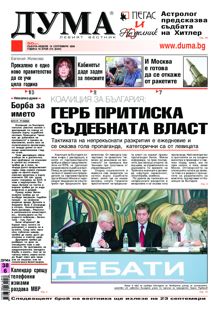 АБОНАМЕНТ за вестник „ДУМА“ за 2026 година. Можете да се абонирате в: „Български пощи“ АД до 15 декември 2025 г., „Доби прес“ ЕООД до 28 декември 2025 г., в редакцията на вестника до 20 декември 2025 г. Каталожен номер 6. Цени: 12 месеца - 149 € / 291,42 лв., 6 месеца - 75 € / 146,69 лв., 3 месеца - 40 € / 78,23 лв., 1 месец - 14 € / 27,38 лв. За повече информация тел. 02 9705 203 и 02 9705 216 отдел „Разпространение” на в-к ДУМА на ул. „Позитано” 20 А. E-mail: abonament@duma.bg АБОНАМЕНТ за вестник „ДУМА“ за 2026 година. Можете да се абонирате в: „Български пощи“ АД до 15 декември 2025 г., „Доби прес“ ЕООД до 28 декември 2025 г., в редакцията на вестника до 20 декември 2025 г. Каталожен номер 6. Цени: 12 месеца - 149 € / 291,42 лв., 6 месеца - 75 € / 146,69 лв., 3 месеца - 40 € / 78,23 лв., 1 месец - 14 € / 27,38 лв. За повече информация тел. 02 9705 203 и 02 9705 216 отдел „Разпространение” на в-к ДУМА на ул. „Позитано” 20 А. E-mail: abonament@duma.bg
