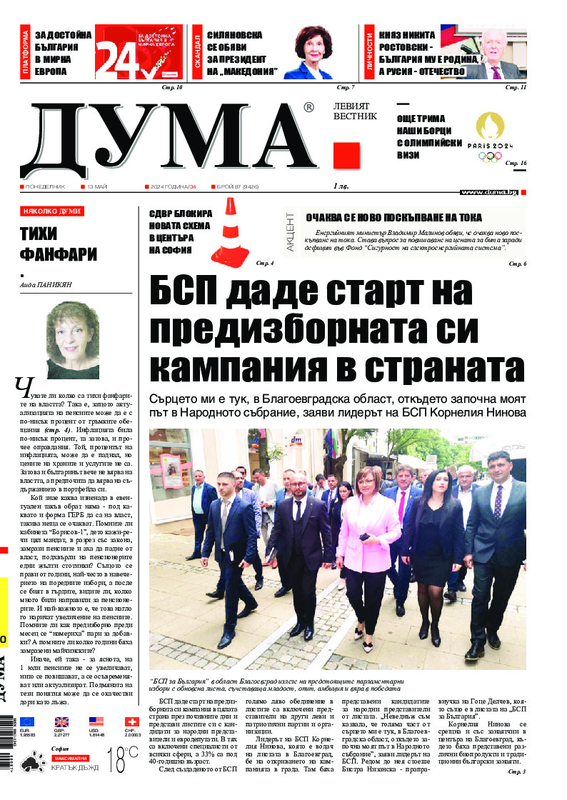 АБОНАМЕНТ за вестник „ДУМА“ за 2026 година. Можете да се абонирате в: „Български пощи“ АД до 15 декември 2025 г., „Доби прес“ ЕООД до 28 декември 2025 г., в редакцията на вестника до 20 декември 2025 г. Каталожен номер 6. Цени: 12 месеца - 149 € / 291,42 лв., 6 месеца - 75 € / 146,69 лв., 3 месеца - 40 € / 78,23 лв., 1 месец - 14 € / 27,38 лв. За повече информация тел. 02 9705 203 и 02 9705 216 отдел „Разпространение” на в-к ДУМА на ул. „Позитано” 20 А. E-mail: abonament@duma.bg АБОНАМЕНТ за вестник „ДУМА“ за 2026 година. Можете да се абонирате в: „Български пощи“ АД до 15 декември 2025 г., „Доби прес“ ЕООД до 28 декември 2025 г., в редакцията на вестника до 20 декември 2025 г. Каталожен номер 6. Цени: 12 месеца - 149 € / 291,42 лв., 6 месеца - 75 € / 146,69 лв., 3 месеца - 40 € / 78,23 лв., 1 месец - 14 € / 27,38 лв. За повече информация тел. 02 9705 203 и 02 9705 216 отдел „Разпространение” на в-к ДУМА на ул. „Позитано” 20 А. E-mail: abonament@duma.bg