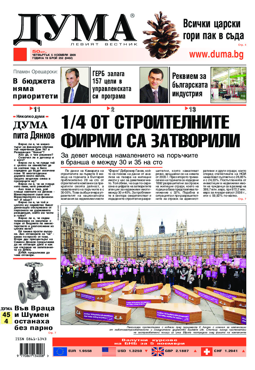 АБОНАМЕНТ за вестник „ДУМА“ за 2026 година. Можете да се абонирате в: „Български пощи“ АД до 15 декември 2025 г., „Доби прес“ ЕООД до 28 декември 2025 г., в редакцията на вестника до 20 декември 2025 г. Каталожен номер 6. Цени: 12 месеца - 149 € / 291,42 лв., 6 месеца - 75 € / 146,69 лв., 3 месеца - 40 € / 78,23 лв., 1 месец - 14 € / 27,38 лв. За повече информация тел. 02 9705 203 и 02 9705 216 отдел „Разпространение” на в-к ДУМА на ул. „Позитано” 20 А. E-mail: abonament@duma.bg АБОНАМЕНТ за вестник „ДУМА“ за 2026 година. Можете да се абонирате в: „Български пощи“ АД до 15 декември 2025 г., „Доби прес“ ЕООД до 28 декември 2025 г., в редакцията на вестника до 20 декември 2025 г. Каталожен номер 6. Цени: 12 месеца - 149 € / 291,42 лв., 6 месеца - 75 € / 146,69 лв., 3 месеца - 40 € / 78,23 лв., 1 месец - 14 € / 27,38 лв. За повече информация тел. 02 9705 203 и 02 9705 216 отдел „Разпространение” на в-к ДУМА на ул. „Позитано” 20 А. E-mail: abonament@duma.bg