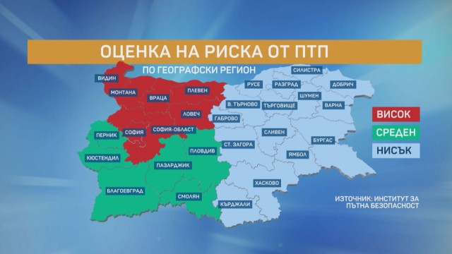 "В Северозападна България има най-висок риск да катастрофираме, там пътищата са най-лоши. Източната част е със среден риск и най-безопасно е в южната част на България", отбеляза Богдан Милчев.