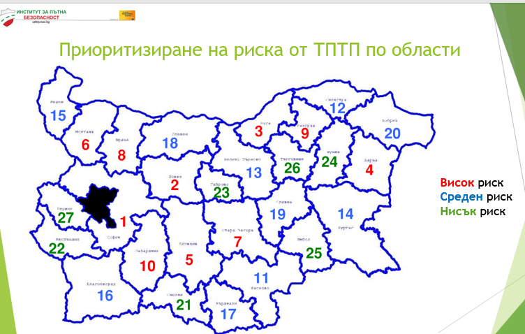 От там са направили оценка на риска за катастрофите в цяла България и посочват най-рисковите отсечки и "черните точки" на пътната карта на страната.