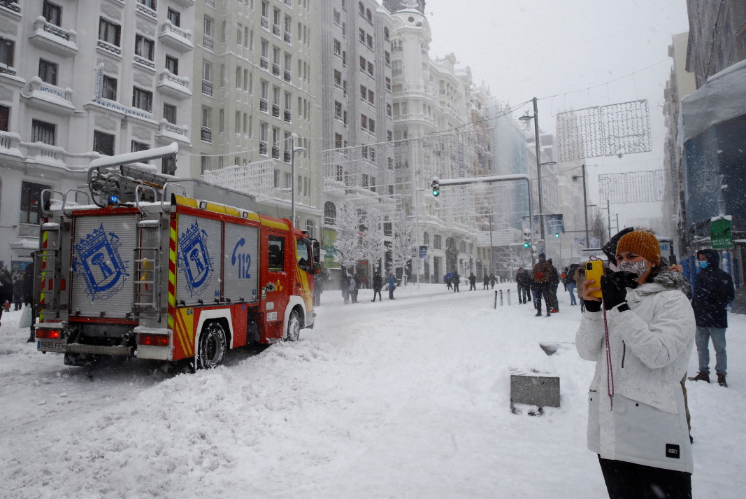 С падането на нощта дебела снежна покривка блокира Мадрид. Много улици и шосета в и около града се оказаха непроходими, а мадридското летище бе затворено за полети. Засегнати са 400 пътища в централната част на страната.