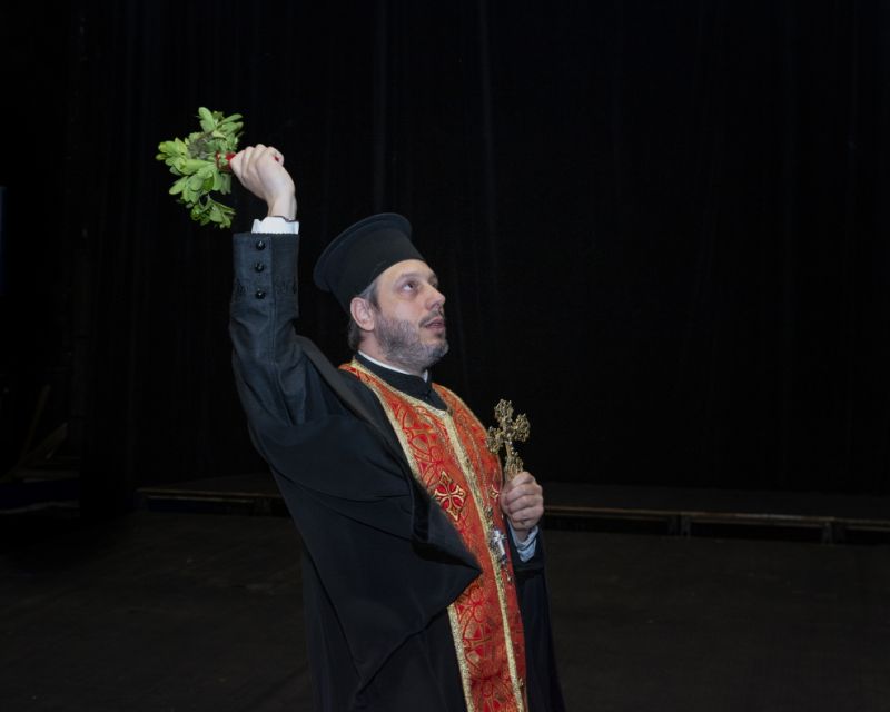 След откриването на скулптурния портрет на Стоян Бъчваров отец Дончо Александров от храм "Свети Атанасий" отслужи водосвет за здраве и благоденствие и отправи хубави послания към актьорите и всички, заети във Варненския театър, който служи на изкуството вече цял век.