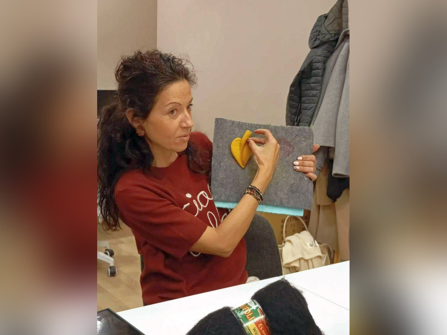 "Въведох и глината, защото моите курсисти работят само с вълна и реших да им направя изненада. Поканих моя позната и колежка - майстор грънчар, и за първи път изваяхме глинени чаши. Оказа се вълнуващо и ще продължим с изработването на коледни елхи от глина. Целта ми е ателието да стане място, в което да възраждаме различни видове занаяти", категорична е Йоана. В момента са на коледна вълна и нейните ученици майсторят оригинални декорации, венци, коледни топки, елхички. Работилничките са тематични според сезона и празника, който предстои. По-напредналите, които усвояват тънкостите на занаята повече от половин година, сами определят какво искат да направят и го реализират успешно без помощ.