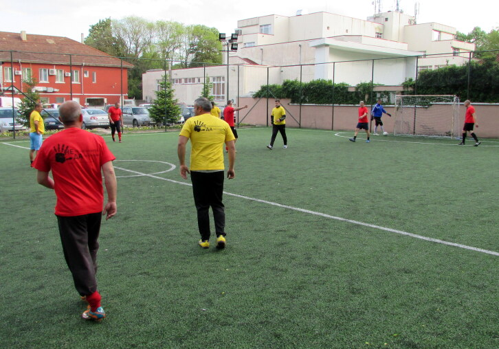 Единият отбор беше съставен от служители на полицията и пожарната, а другият – от такива на Общинска администрация и гранична полиция. Пожарникарите и полицаите първи нанесоха своя удар, като само в рамките на 7-8 минути в средата на първото полувреме набързо поведоха с 3:0. Малко преди паузата техният опонент върна един гол и така при резултат 3:1 завърши първата част.