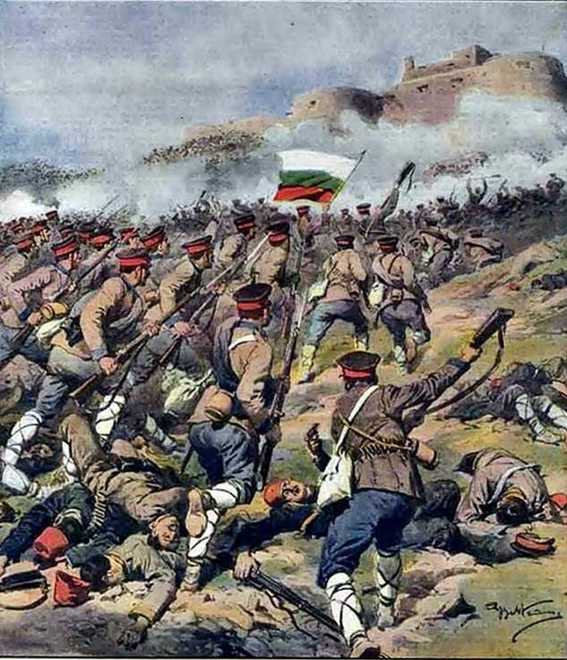 Ударът върху турските части е унищожителен. Българските военнодухови оркестри засвирват "Шуми Марица окървавена" и бойният марш наелектризира воините да краен предел. Разгаря се жесток ръкопашен бой... Удряй с приклада за избитите майки и сестри през робството, мушкай с щика за петвековното тегло, бий със сапьорната лопатка за разплаканите деца. Ако щикът се счупи, хващай врага за гърлото, за да отмъстиш за поробените братя в Македония и Тракия.
