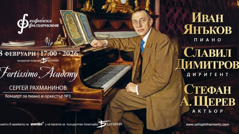 Първият концерт от поредицата, на 8 февруари от 17 ч., е посветен на гения на Сергей Рахманинов, с фокус върху неговия Концерт за пиано и оркестър №3 в ре минор. Гид в света на руския композитор ще бъде Стефан А. Щерев - актьор, телевизионен водещ и продуцент. Негови партньори на сцената са пианистът Иван Янъков и диригентът Славил Димитров.