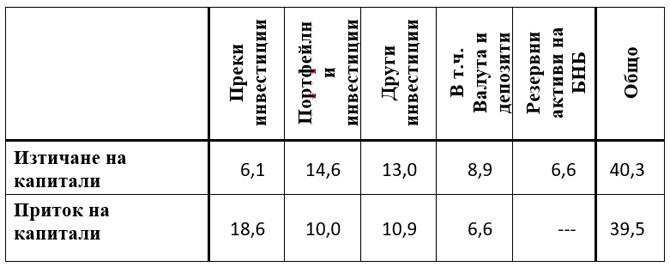 Поддържа се вече станалото традиция превишение на изтичането на капитали над притока на капитали. За целия петгодишен период той не е особено впечатляващ, благодарение на по-високия приток на капитали през последната година. През 2025 г. притокът на чуждестранен капитал у нас се оценява на 12,5 млрд. EUR, докато средногодишно за предходните четири години той е почти два пъти по-малък - 6,7 млрд. EUR.