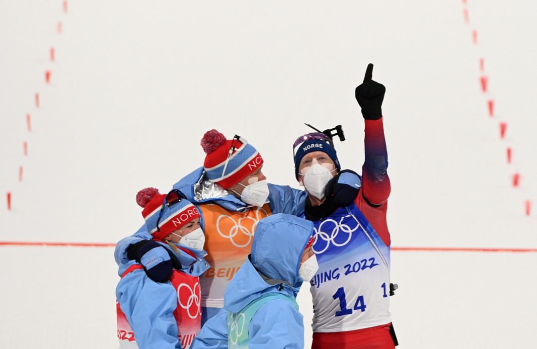 След като Тирил Екхоф завъртя общо 3 наказателни обиколки във втория пост на смесената щафета на 4 по 6 километра на Олимпийските игри в Пекин, братята Тарей и Йоханес Тингнес Бьо донесоха златото на Норвегия с перфектни последни два поста.