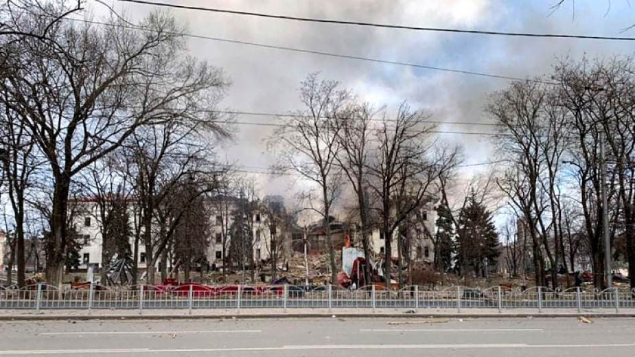 Продължават усилията на спасителните екипи за откриване на оцелели сред останките на разрушения театър след бомбардировка.