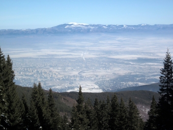 Далече на север се очертаваше синьо-бялата верига на Стара планина, а долу в полето, потънала в мъгливия смог, се мержелееше София.