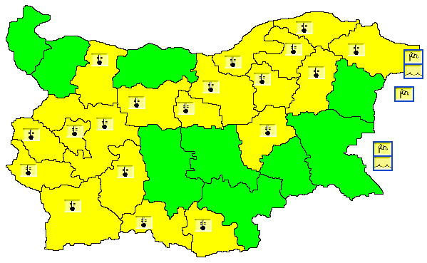 Жълт код за отрицателни дневни температури е обявен в 19 области на страната за вторник. Това съобщават от Националния институт по метеорология и хидрология.