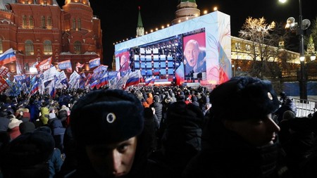 Новият стар президент благодари на руснаците в пряк ефир, без вратовръзка, леко уморен, заобиколен от презизборния си щаб. По традиция на Червения площад в Москва имаше концерт в негова подкрепа. От сцената Владимир Путин обеща на руснаците "още много успехи".