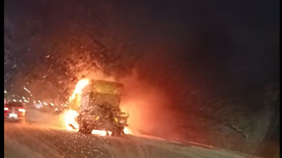 Снегорин пламна на Северната тангента в София край село Волуяк в четвъртък сутрин. Инцидентът, станал при отбивката за Костинброд, предизвика километрично задръстване в платното в посока Бургас.