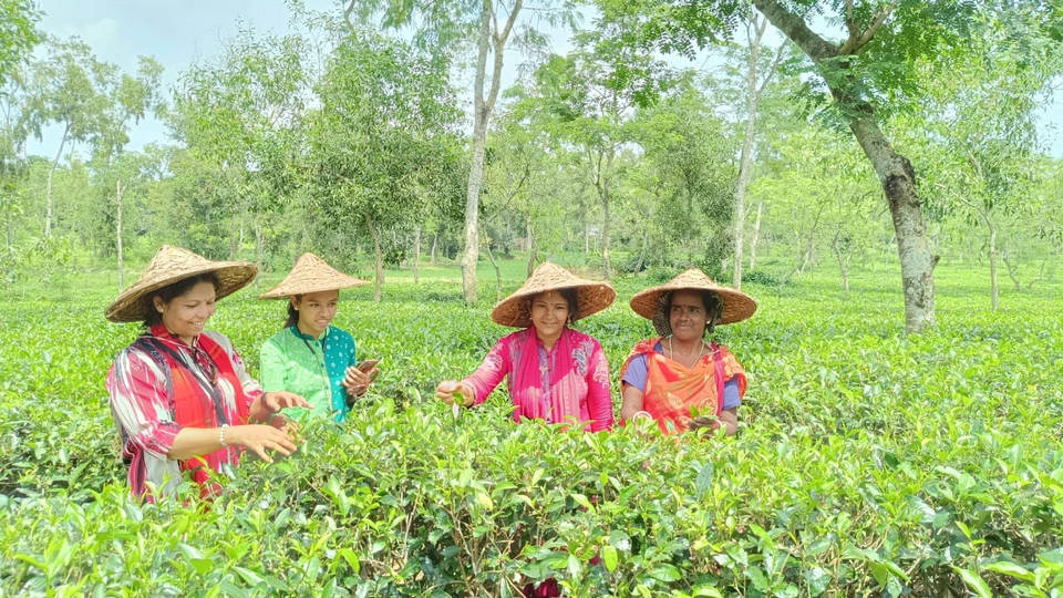 Красива журналистка от Бангладеш (първата вляво) и дъщеря й (до нея) берат чай в компанията на жени, които цял живот се прехранват с това. Едно от необходимите условия, докато се берат листата, е берачките да са усмихнати, за да не горчи напитката