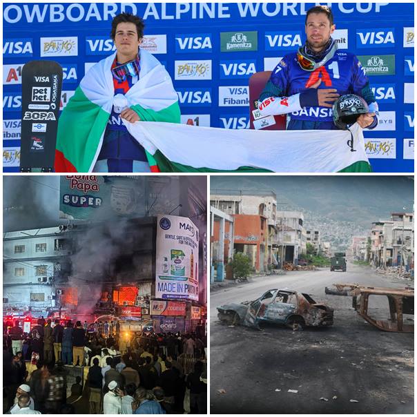 Шампионът Тервел Замфиров (вляво) и бронзовият медалист Радо Янков се радват на почетната стълбица след старта от Световната купа по сноуборд в Банско. Представянето е историческо, защото за пръв път на подиума се качват двама българи. При дамите 16-годишната Малена Замфирова записа четвърто и пето място