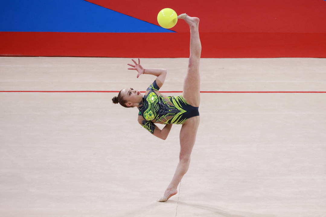Световната и европейска вицешампионка от 2025 г. изигра силен многобой и завърши трета с актив от 114,050 точки. Възпитаничката на Валентина Иванова демонстрира висока класа на всички уреди, като даде първи по сила резултат на обръч - 29,800 т., и на топка - 28,750. Българката се нареди седма на бухалки с 28,000 т. и пета на лента с 27,500.