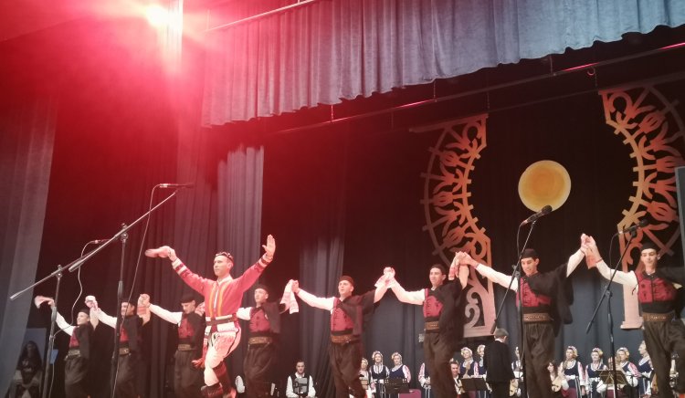 На сцената в Дома на културата в града те представиха концерт-спектакъла „Ела се вие, превива“, пресъздаващ сватбените ритуали и пролетните празници от България.