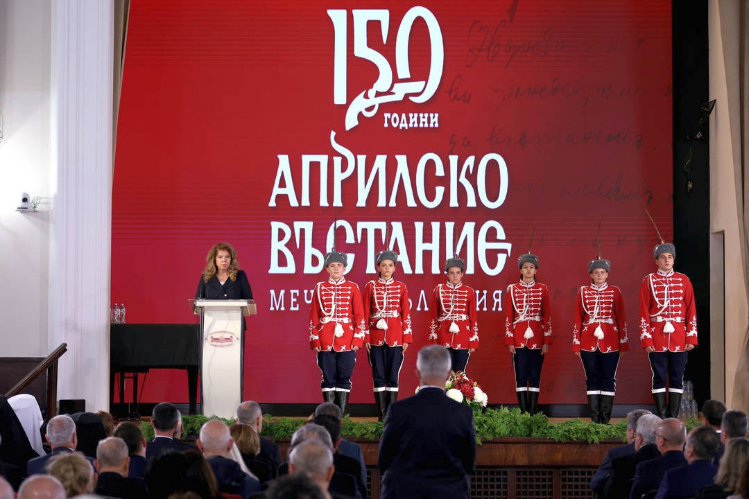 Априлското въстание е израз на воля, избор и жадувана саможертва, която пренесе светлината от Възраждането към държавността. Защото свободата не е блян, а съзнателен избор, който подкопава диктата на безправието като едничък път към историческата промяна. Това заяви президентът Илияна Йотова по време на Общобългарското тържествено събрание, организирано от БАН под патронажа на президента и част от националните чествания по повод 150 години от въстанието.