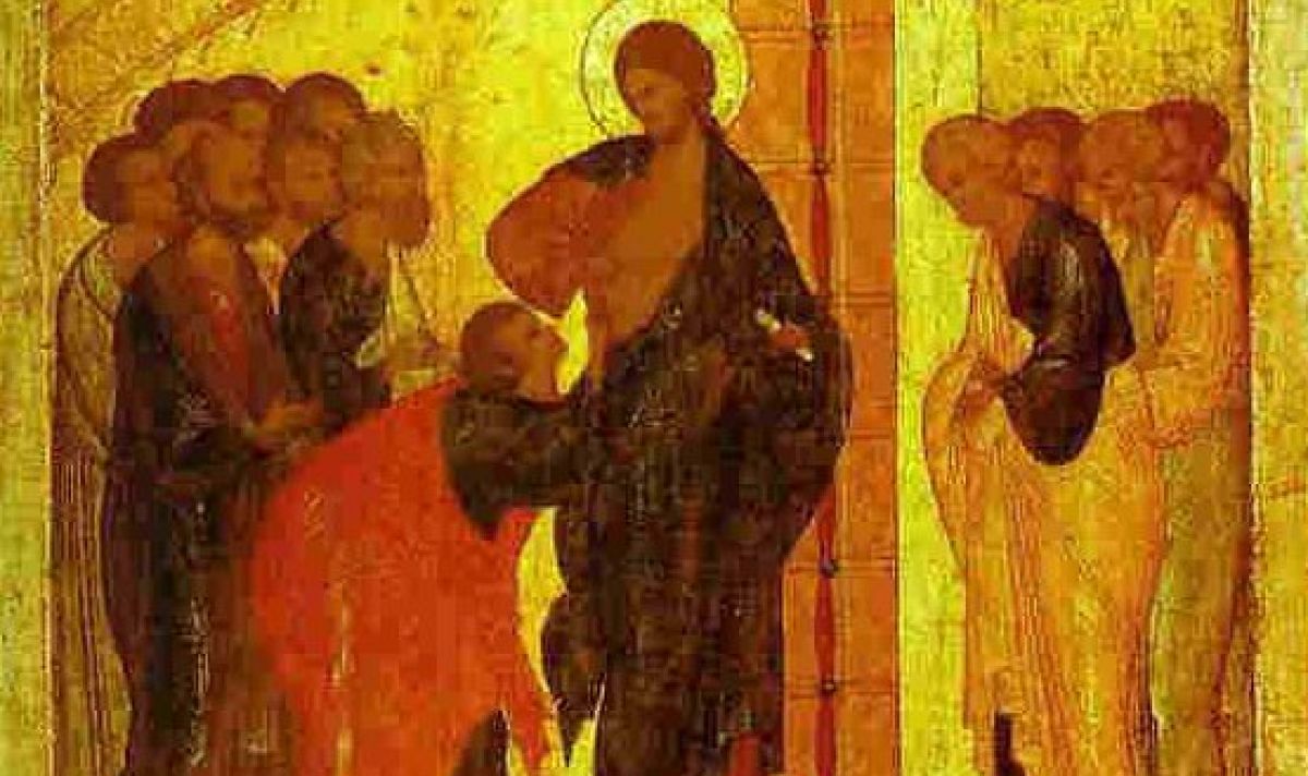 Христос се обръща към него и му казва: "Дай си пръста тук и виж ръцете ми, дай ръката си и я сложи на ребрата ми. И не бъди невярващ, а вярващ. Понеже ме видя, повярва ли? Блажени са тези, които без да видят, са повярвали".