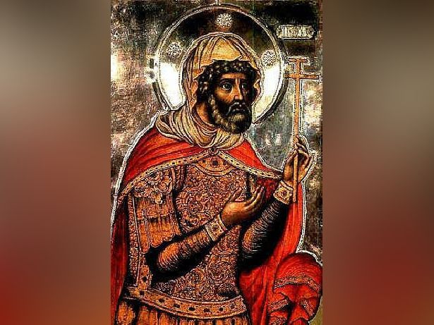 Едно предание разказва, че капка света кръв от прободеното ребро на Спасителя паднала в неговите болни очи и ги излекувала.