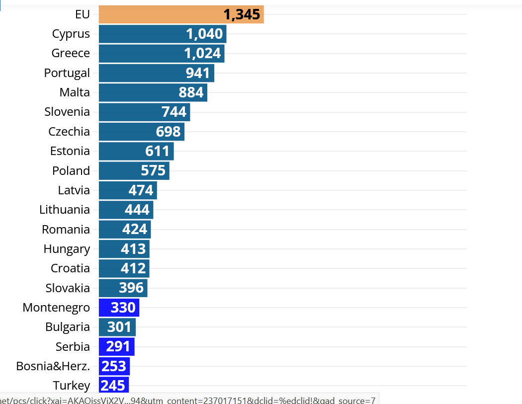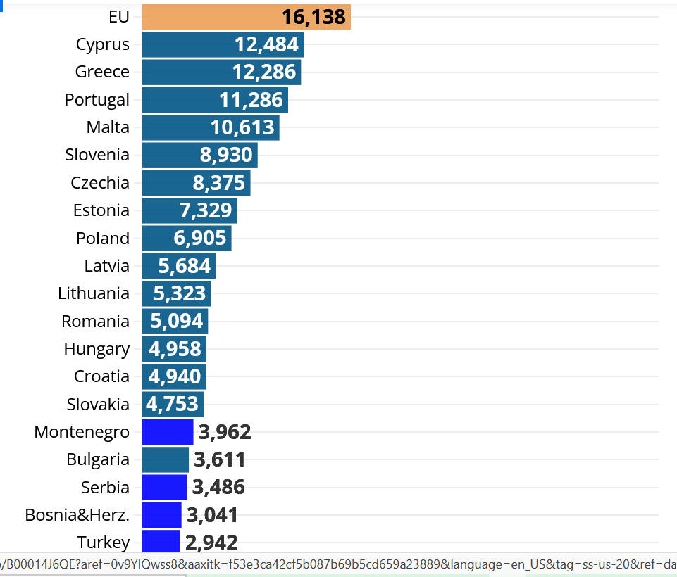 Според Евростат през 2022 г. средният разход за получател на пенсия за старост е бил 16 138 евро в ЕС. Това се равнява на приблизително 1345 евро на месец. Разбира се, България е далеч назад от средното за Съюза. Годишните пенсии през съответната година варират от 3611 евро в България до 31 385 евро в Люксембург. Скандинавците са с едни от най-високите суми, като средната пенсия за старост на получател надхвърля преди три години 30 000 евро в Норвегия и Дания. Тогава тя е значително над средната за ЕС също и в Швеция (22 436 евро) и Финландия (21 085 евро). Най-бедните са концентрирани на Балканите и в Източната част на ЕС.
