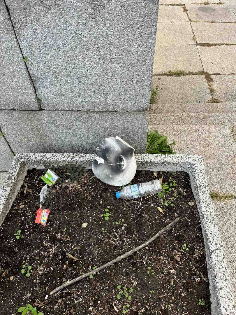 Отрязана и захвърлена встрани е главата на детето от композицията. За инцидента съобщи лидерът на столичните социалисти и председател на Групата съветници на МК "БСП за България" Иван Таков.