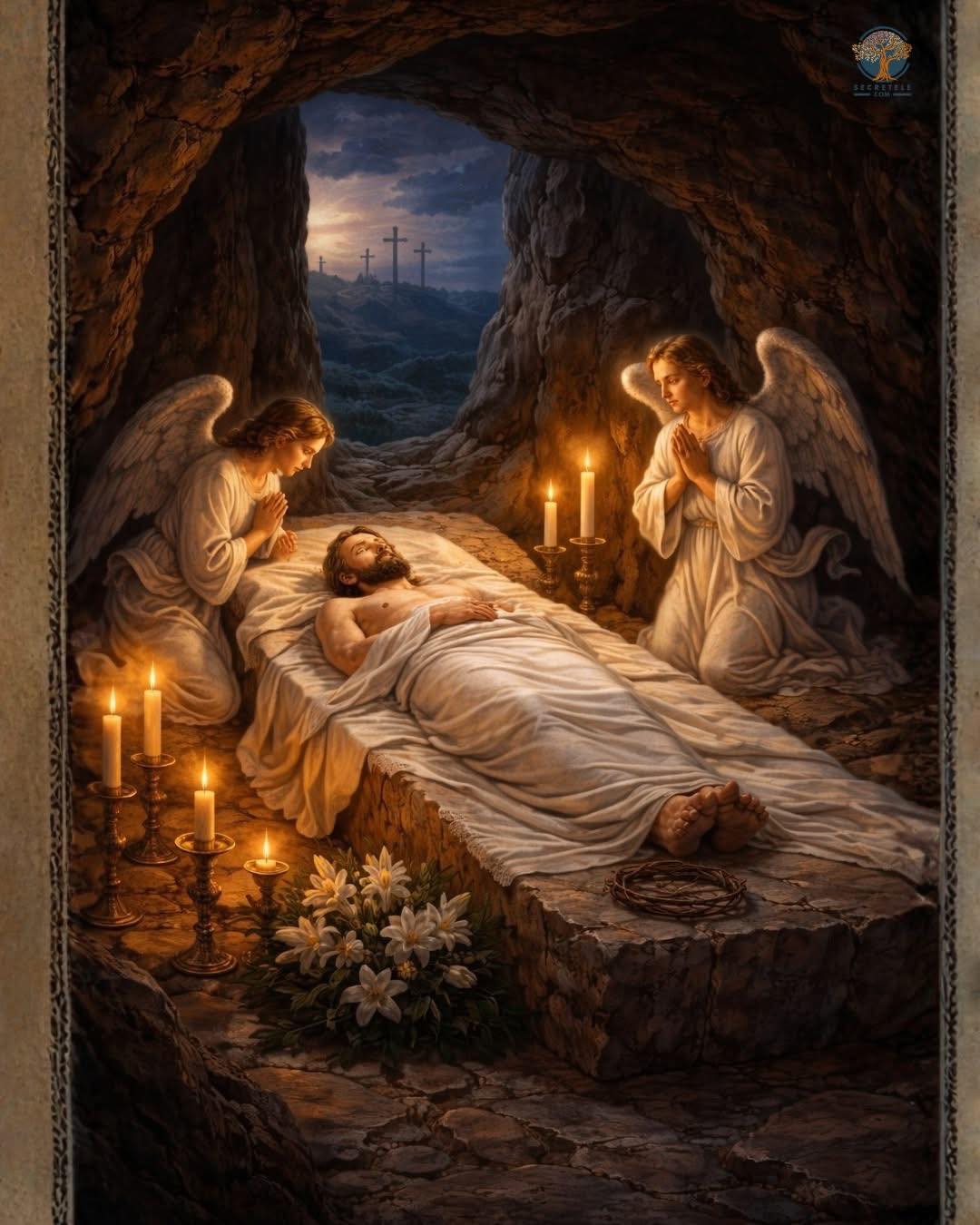 Когато Христос издъхнал като човек, тялото му било положено в гроб. Душата му слязла в ада, победила го и освободила пленените там души. На третия ден душата и тялото отново се съединили и тялото възкръснало от мъртвите. На Велика събота над гроба на Иисус Христос в храма „Възкресение Христово“ в Йерусалим от небето се спуска Благодатният огън. Православните християни вярват, че това е чудо, което се случва всяка година в деня преди Великден. Синя светлина се появява в гробницата на Христос обикновено от мраморната плоча, покриваща мястото, върху което се смята, че е било положено тялото му за погребение. Вярва се, че в първите минути след запалването си този огън има уникалното свойство да не излъчва топлина и да не изгаря.