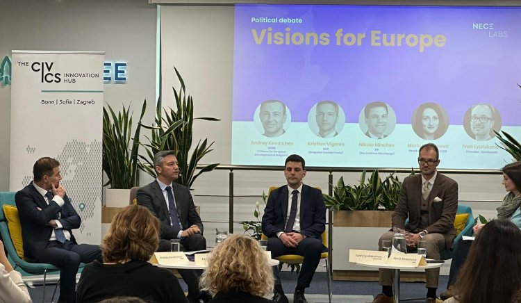 Политическият дебат между представителите на БСП, ПП и ГЕРБ се проведе под мотото „Визия за Европа”.